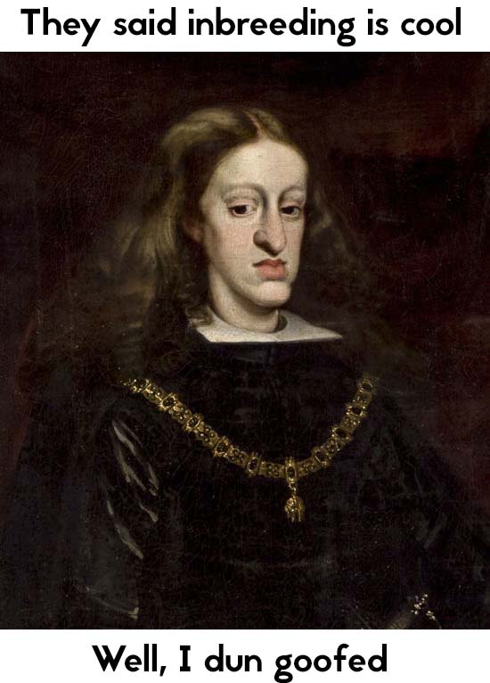 Dėl savidulkos padidėja homozigotų recesyvų dažnis populiacijoje. Per se tai nėra blogai, bet jeigu populiacijoje atsiranda nepalanki mutacija recesyviniame alelyje, palikuonių kartoja didesnė dalis individų gims su išreikšta mutacija. Habsburgų dinastija praktiškai irgi vykdė savidulką, t.y. palikuonys giminėje susilaukdavo vaikų ir leisdavo nepalankiems aleliams iškilti į fenotipo lygmenį. Genetinė įvairovė apsaugo mus nuo nepalankių mutacijų arba nepalankaus aplinkos spaudimo.↩