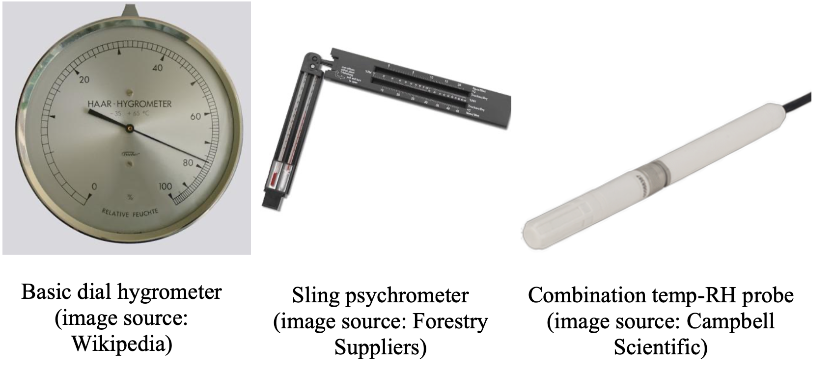 Humidity can be measured in a number of ways, including instruments such as hygrometers, sling psychrometers, and electronic probes such as the HygroMer®, which are often used in a temperature-relative humidity electronic probe.