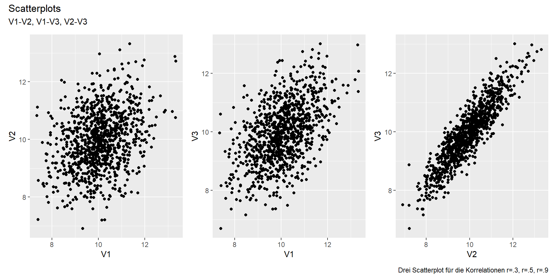 Beispiel: Drei Variablen (V1, V2, V3) mit Zufallswerten und festgelegten Zusammenhängen