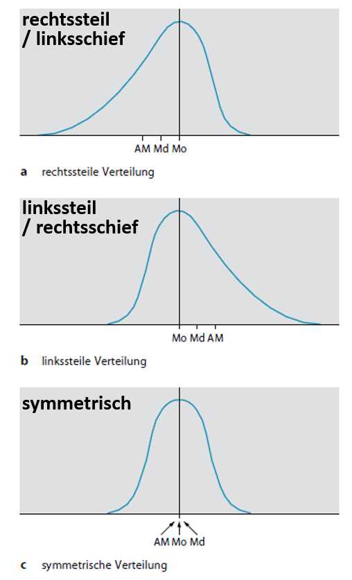 Schiefe von Verteilungen in Abhängigkeit der Lagemaße