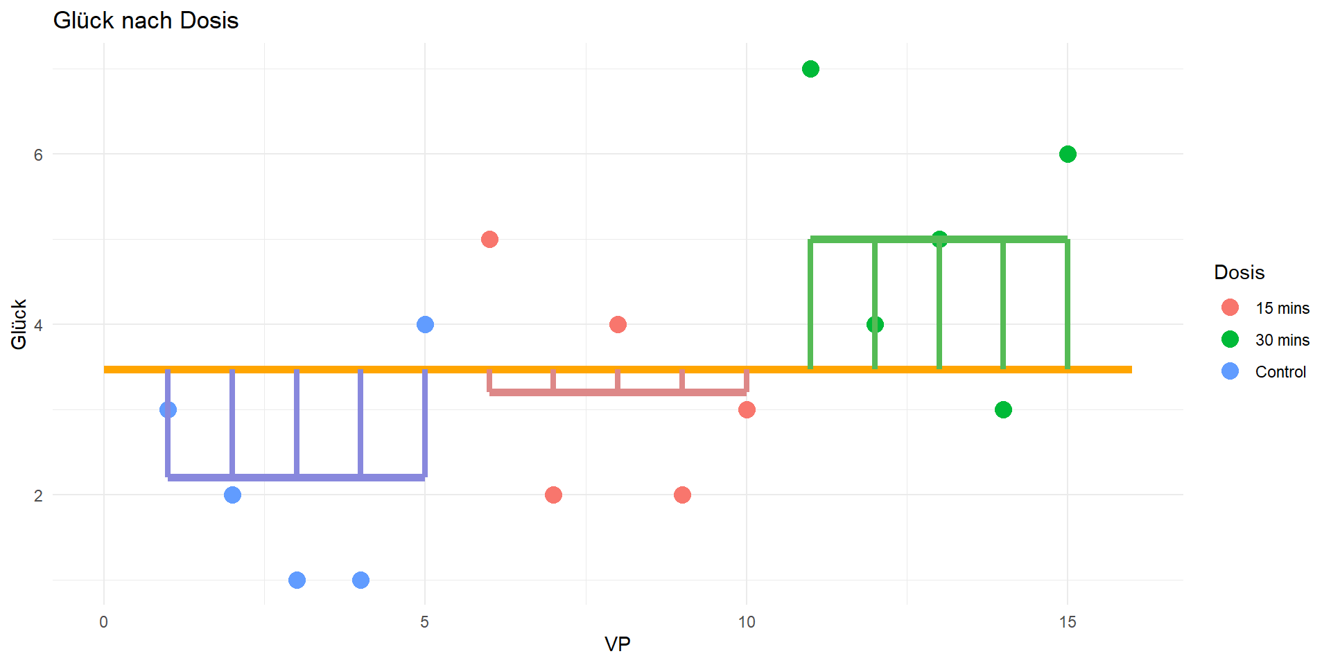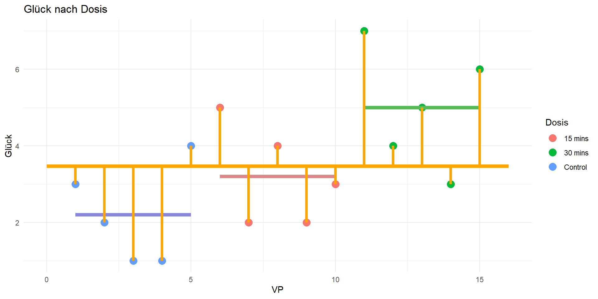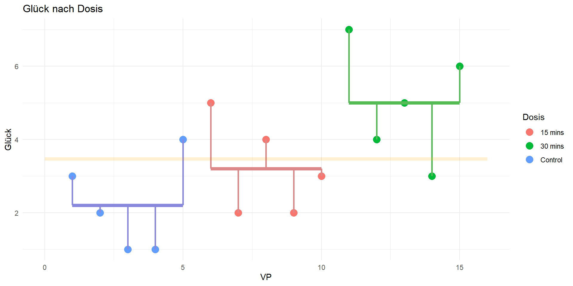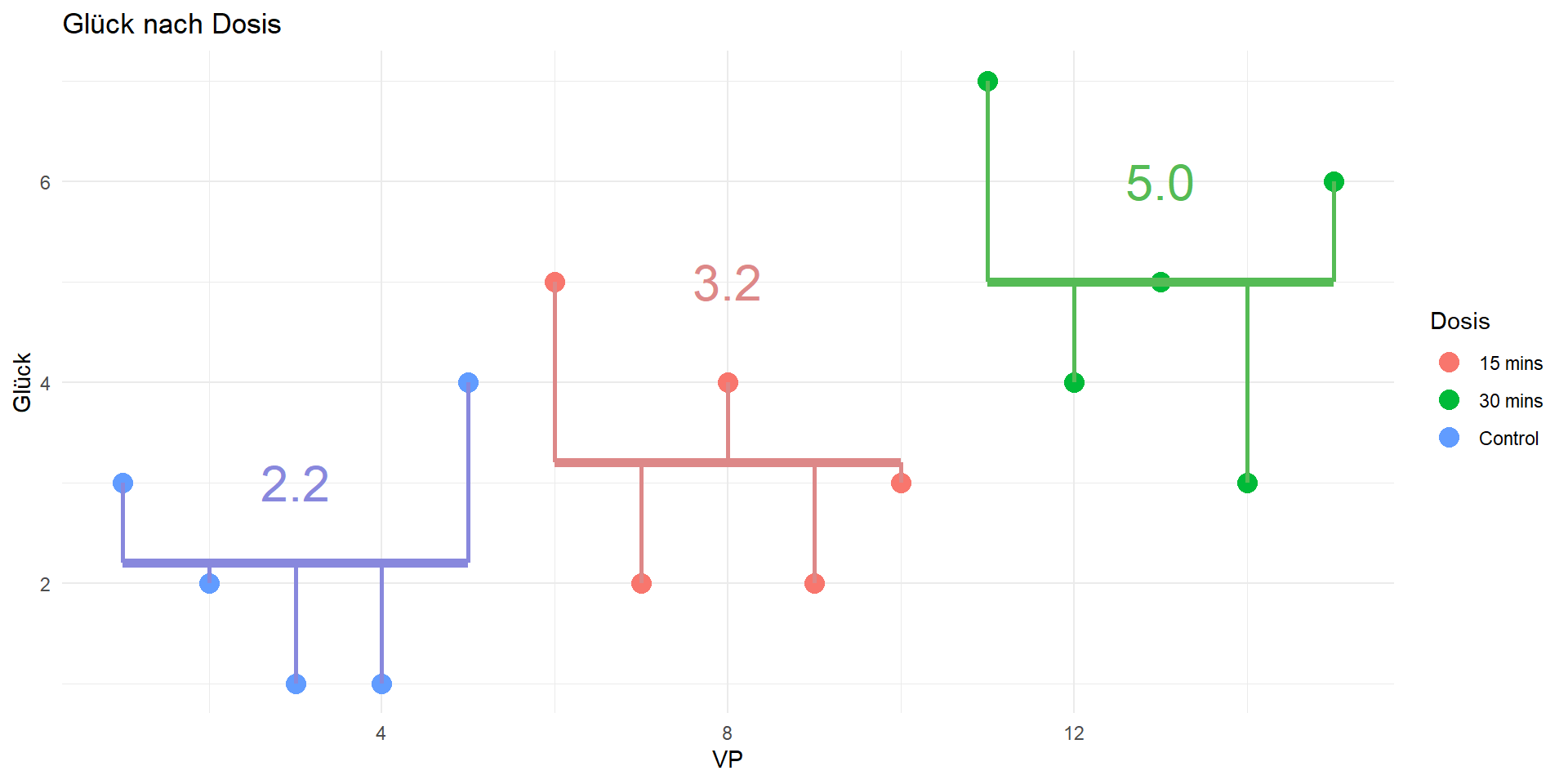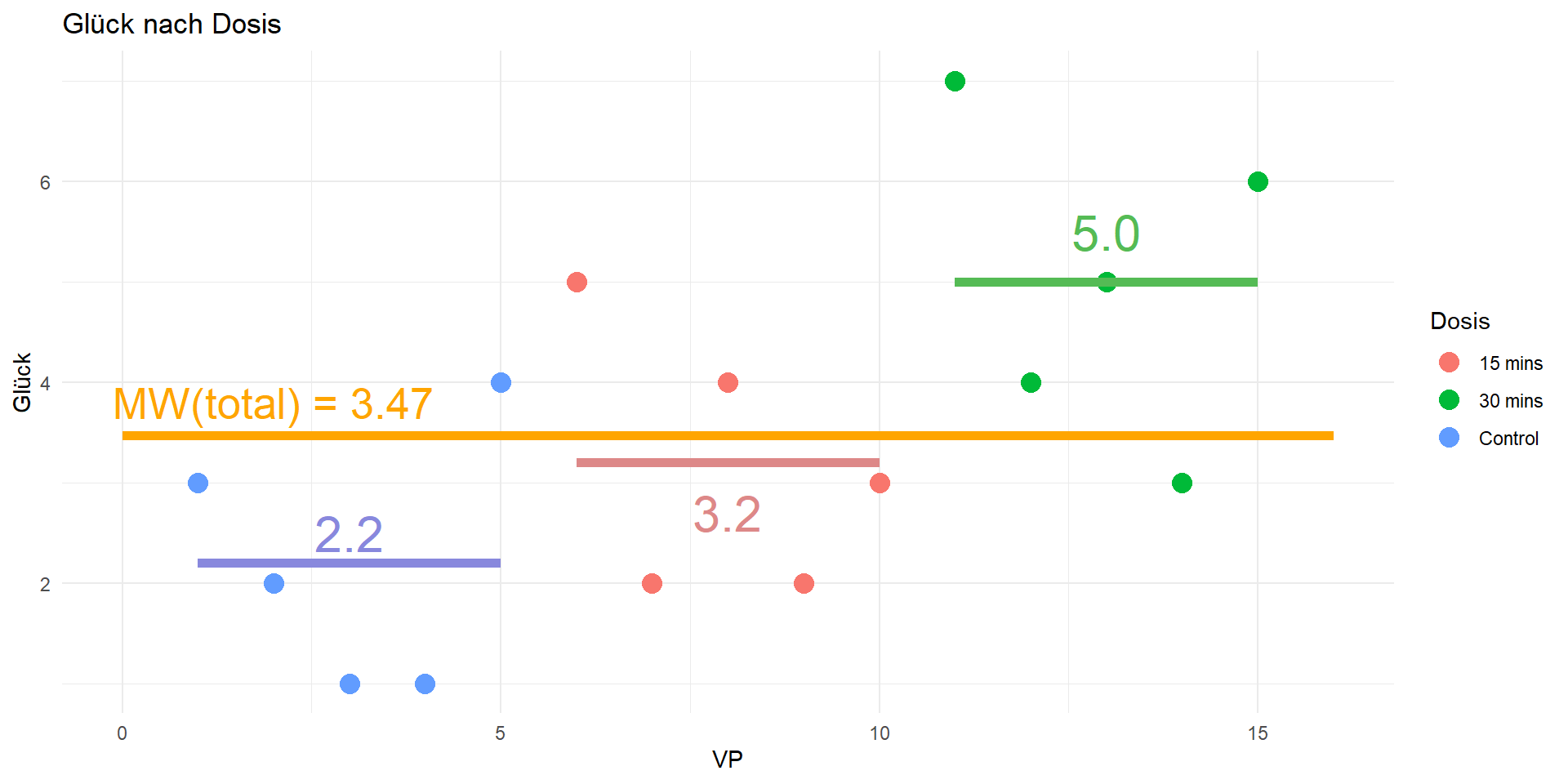 Ausgangspunkt: Kein Effekt; d.h. die Mittelwerte