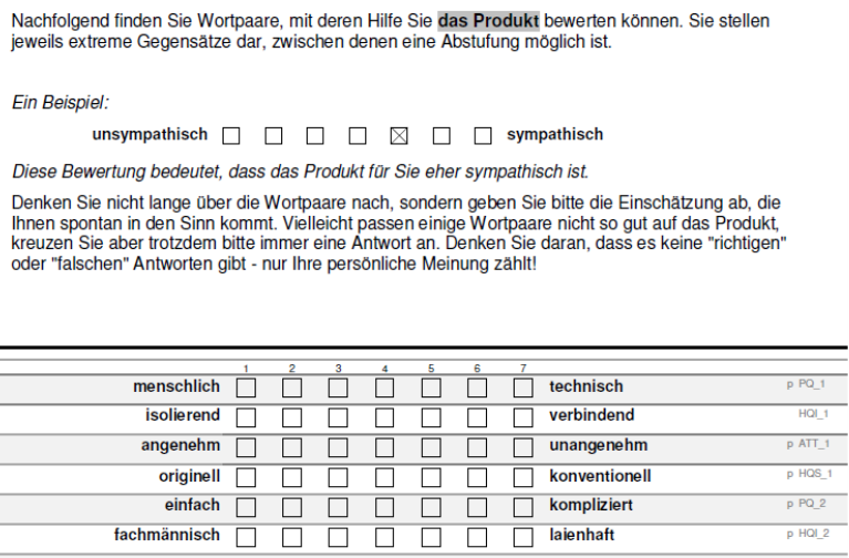 • Fach-Experten überprüfen die gesammelten Items nach Relevanz der Fragen für das jeweilige Konstrukt