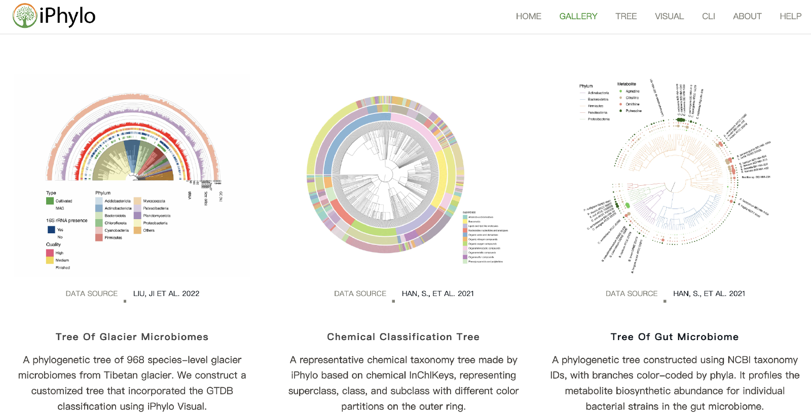 Gallery provides 5 beautiful trees drawn using iPhylo Visual, including:
