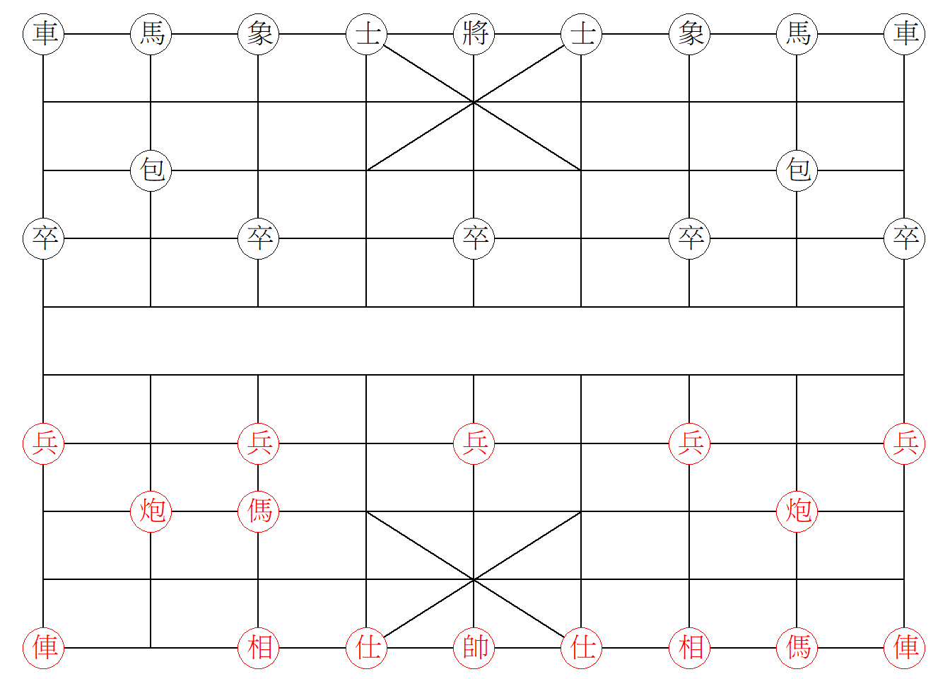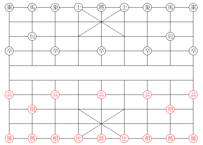 玩家透過 player() 輪流輸入移動的棋子,比如 c(2, 1) 為紅方傌目前的位置,c(3, 3) 為紅方傌移動後的位置。且可以立即看到當前玩家移動的紀錄,棋子的座標位置與存活狀況,以及當前的盤勢: