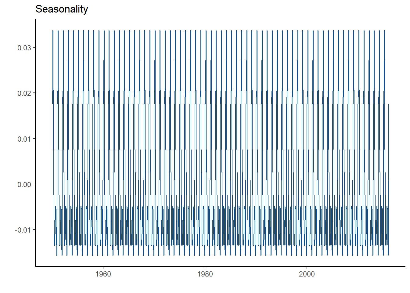 Looks pretty random right? That’s because it is! This plot illustrates the variation in the time series. This is the unexplained variation that solely happens by chance. This term is similar to the error term in a regression model.