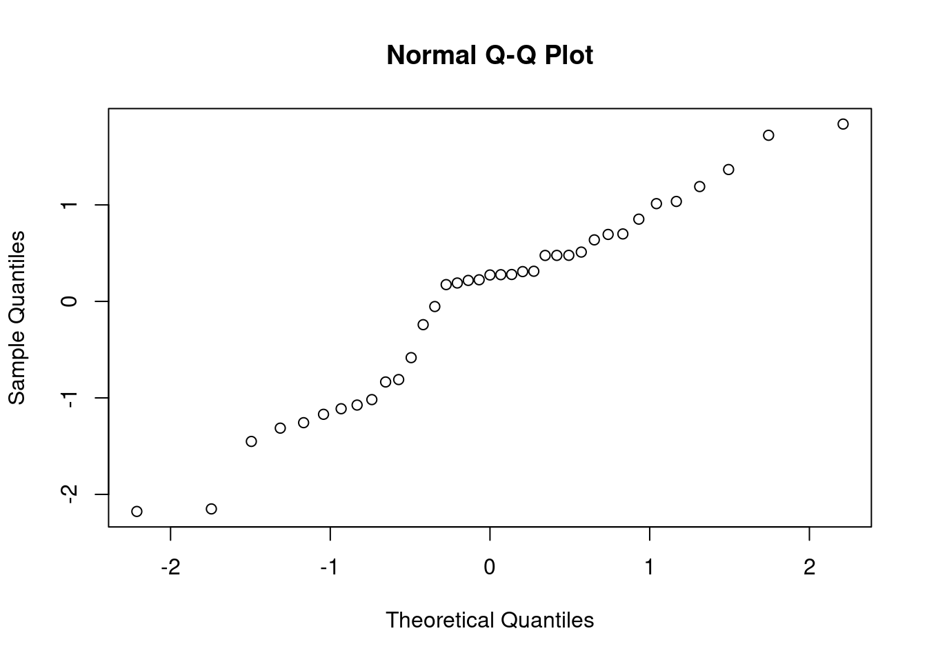 In the normal probability plot, we see that points exactly lie on diagonal line. This indicates that the Normality assumption be satisfied.