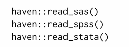 haven可以读取 SPSS、Stata 和 SAS文件: