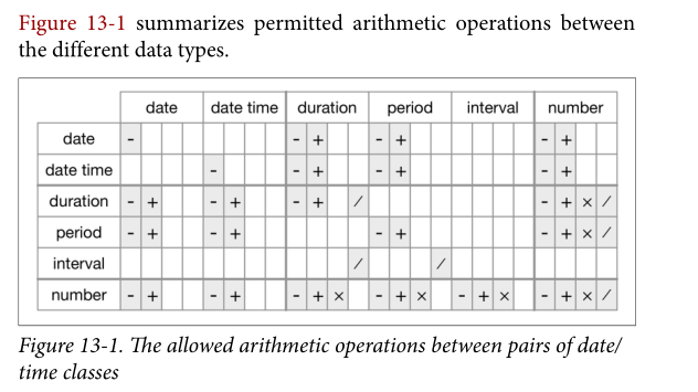 显然,dyears(1) / ddays(365)应该返回1,因为时期总是以秒来表示的,表示 1 年的时间就定义为相当于 365 天的秒数。