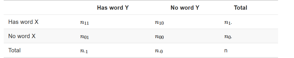 We see, from the above quation, that \(\phi\) is “standarized” by individual counts, so various word pair with different individual frequency can be compared to each other: