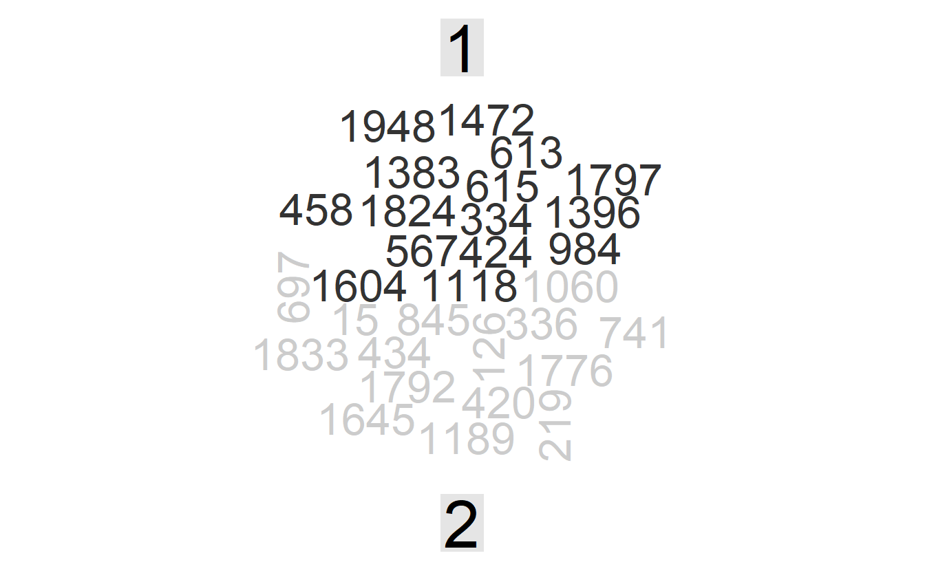 We come to the AssociatedPress document term matrix (the required data strcture for the modeling function) and fit a two topic LDA model with stm::stm (stm stands for structural equation modeling). The stm takes as its input a document-term matrix, either as a sparse matrix (using cast_sparse) or a dfm from quanteda (using cast_dfm). Here we specify a two topic model by setting \(K = 2\) for demonstration purposes, in 6.3 we will see how to choose \(K\) with metrics such as semantic coherence.