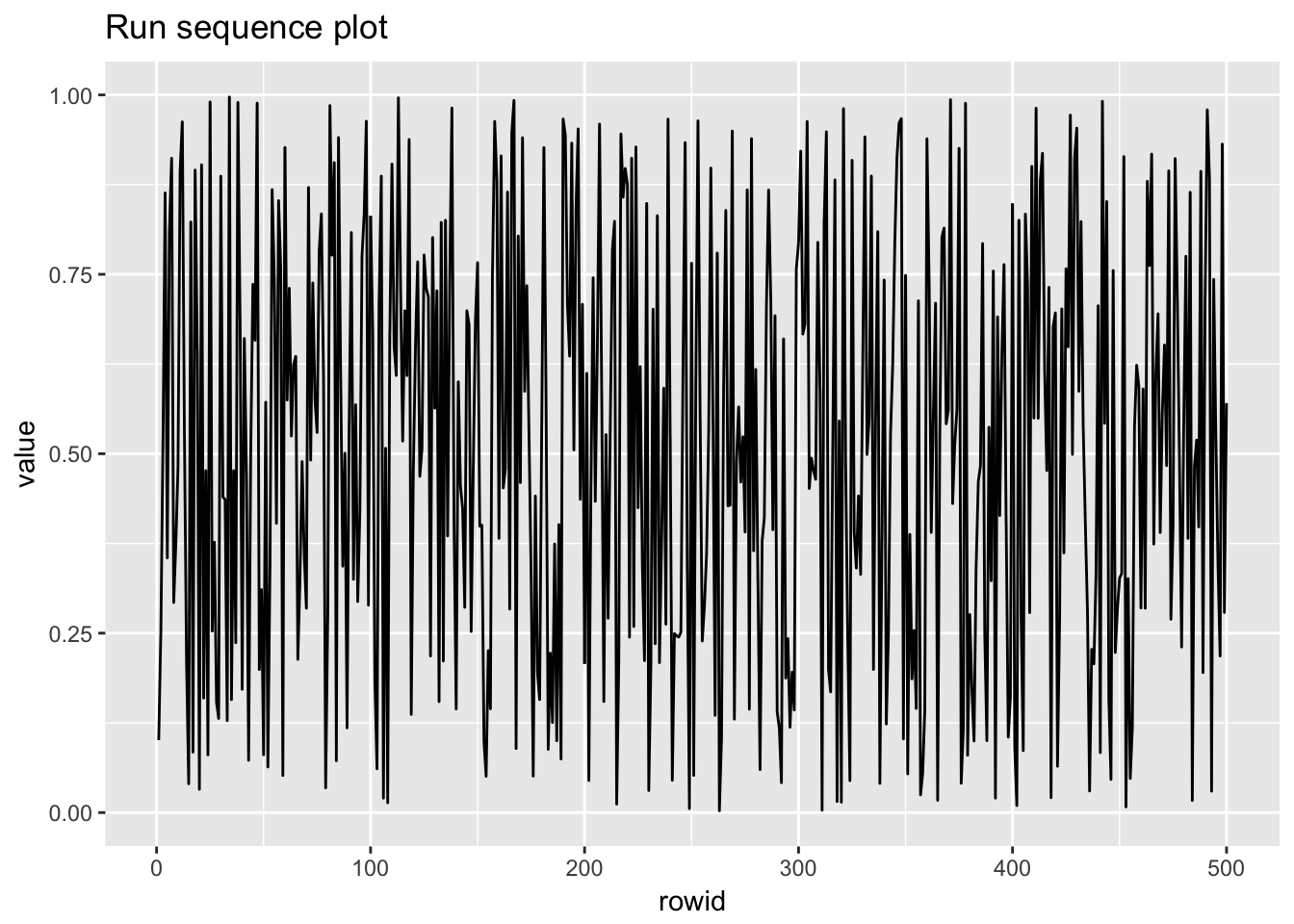 As mentioned in the introduction, this text assumes a basic knowledge of the tidyverse. In this example, we will selct the x data from the data frame, rename the colunn labels, use the gather() function to tidy the data. We will then repeat the process for the y data, removing the group names from the data set. The last step is to combine these two data frames into a single data frame we will use for plotting. I’m sure there are more efficient ways to do this; however, the code used to do this manipulation is typical when working with non-tidy data. An added benifit is that hte code is readable.