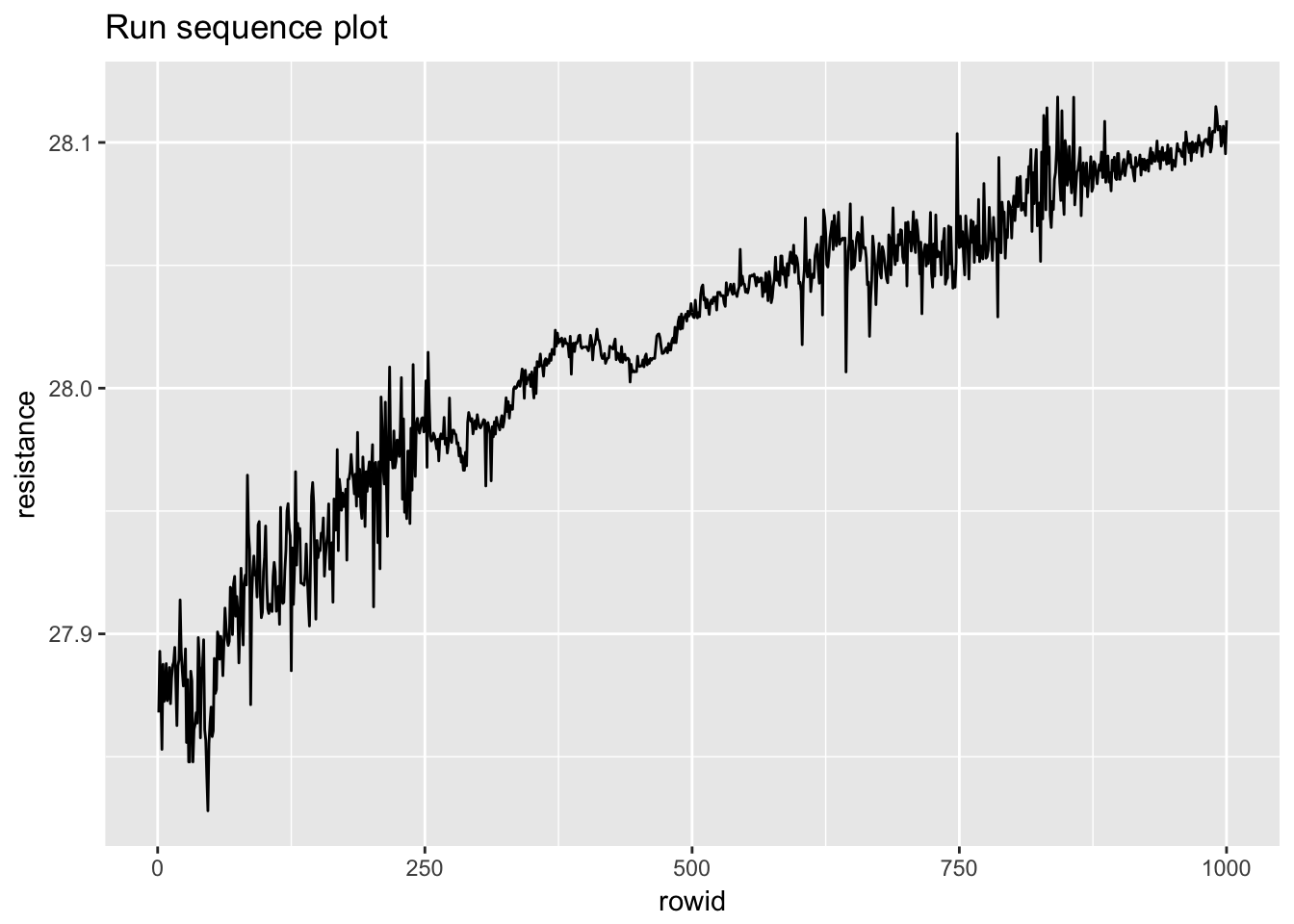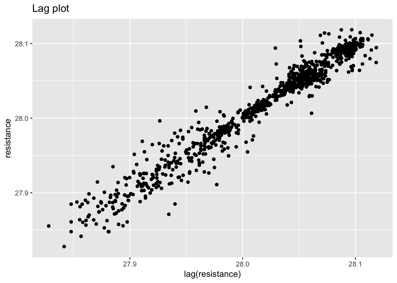 ggplot(standard_resistor, aes(lag(resistance), resistance)) +