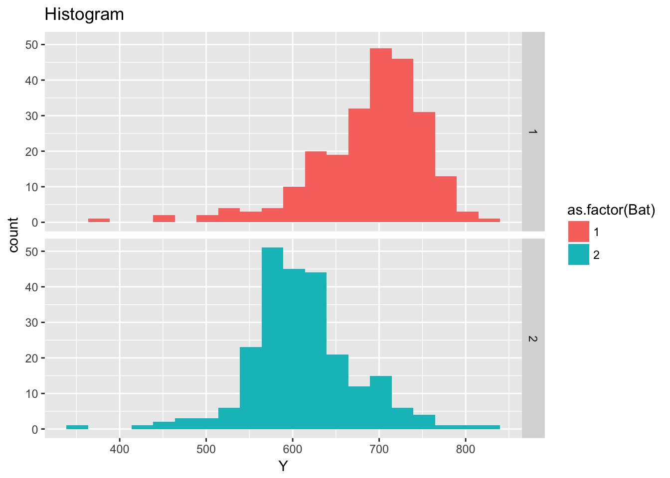 geom_histogram(aes(fill = as.factor(Bat)), bins = 20) +