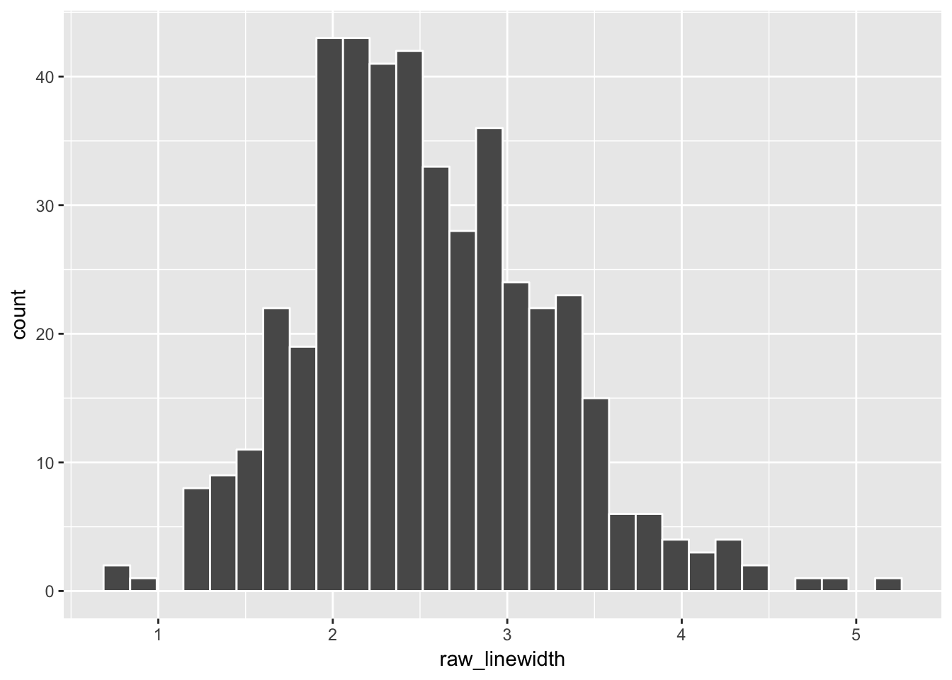 summarise(mean_factor = mean(raw_linewidth), count = n())