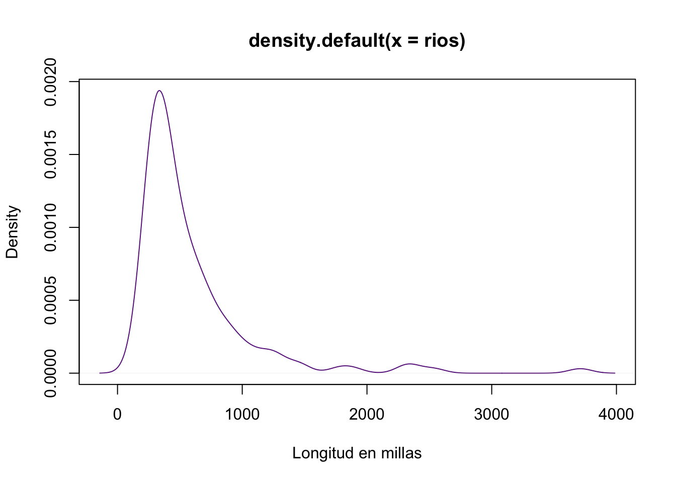 plot(density(rios), col="darkorchid4",xlab="Longitud en millas")