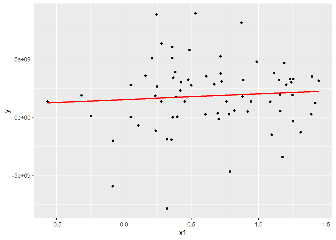 ## x1 2.476e+09 1.107e+09 2.237 0.02889 *