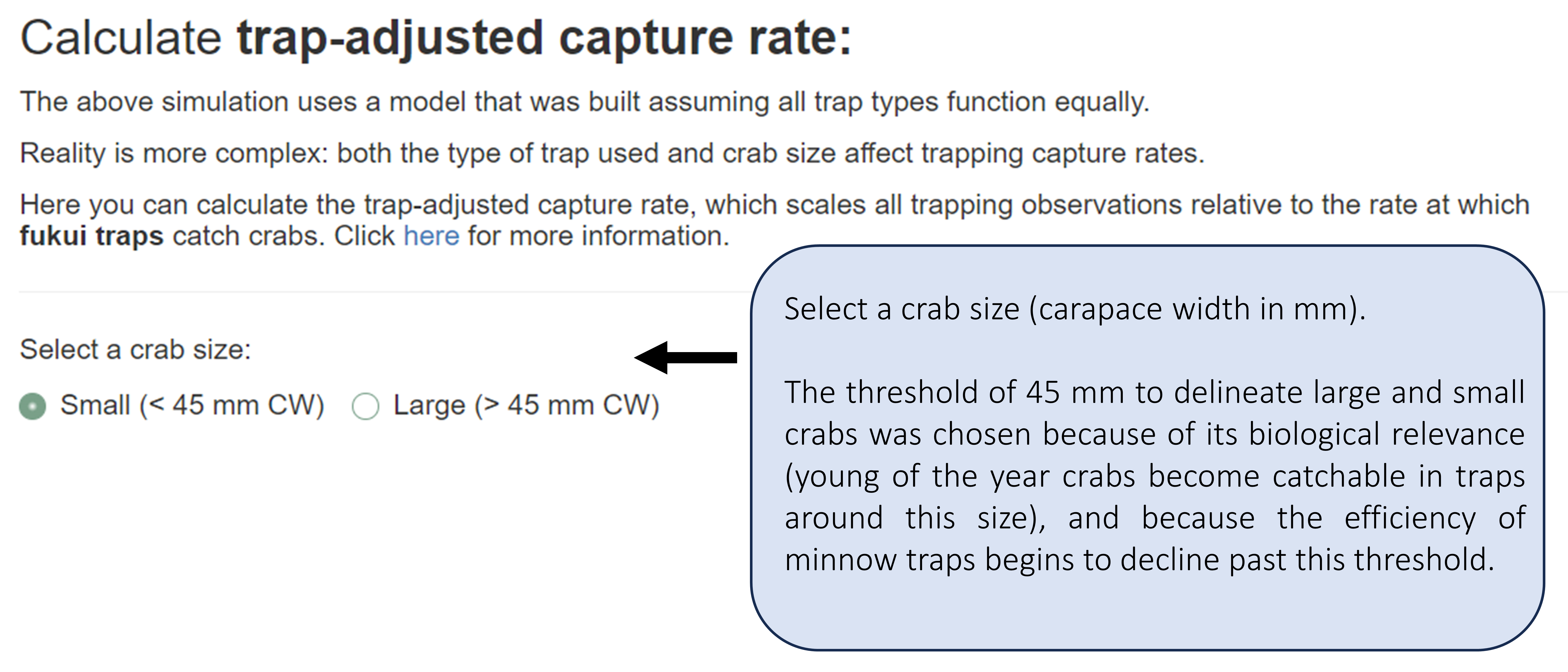 Fill in the input for trap-adjusted capture rate. We’ll begin with small crabs.