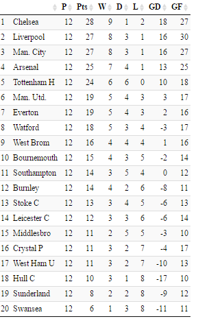 Chelsea became the fourth club to lead the league this season. However, this is not exceptional. In 2000/1, six different teams had been top of the pile by round 8 but Man Utd took over for good the following week and ended 10 points clear
