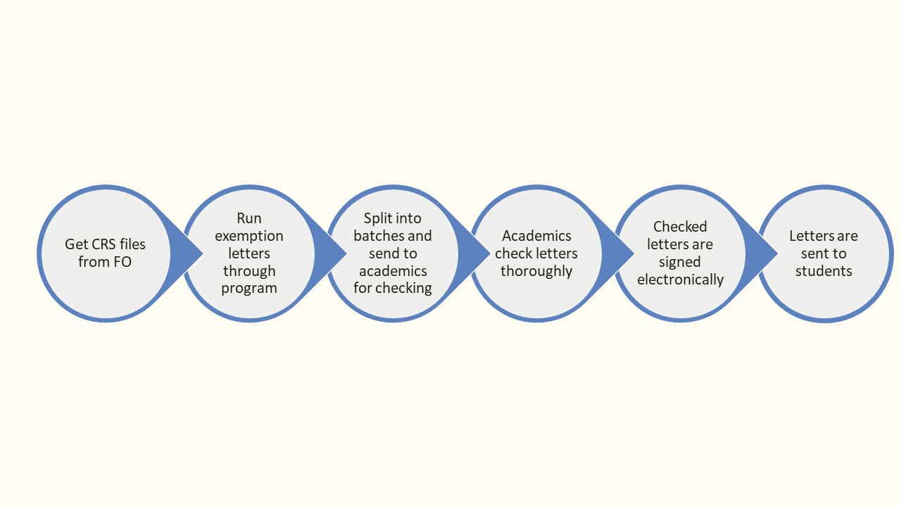 Official exemption letters are generated for all graduating students around their date of graduation. This process is far more intensive than for unofficial letters as stringent checks are in place.
