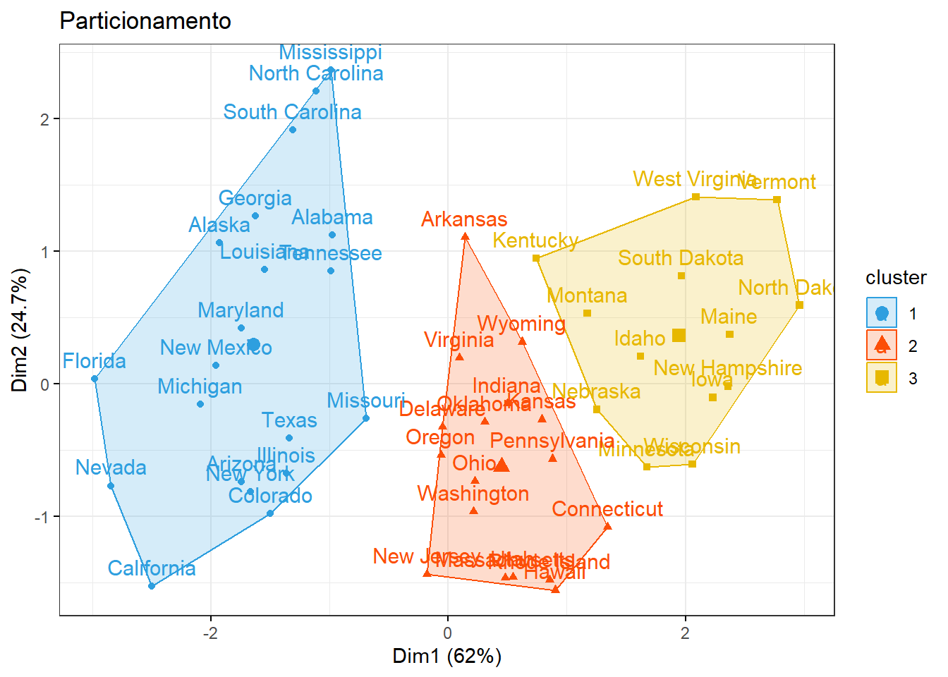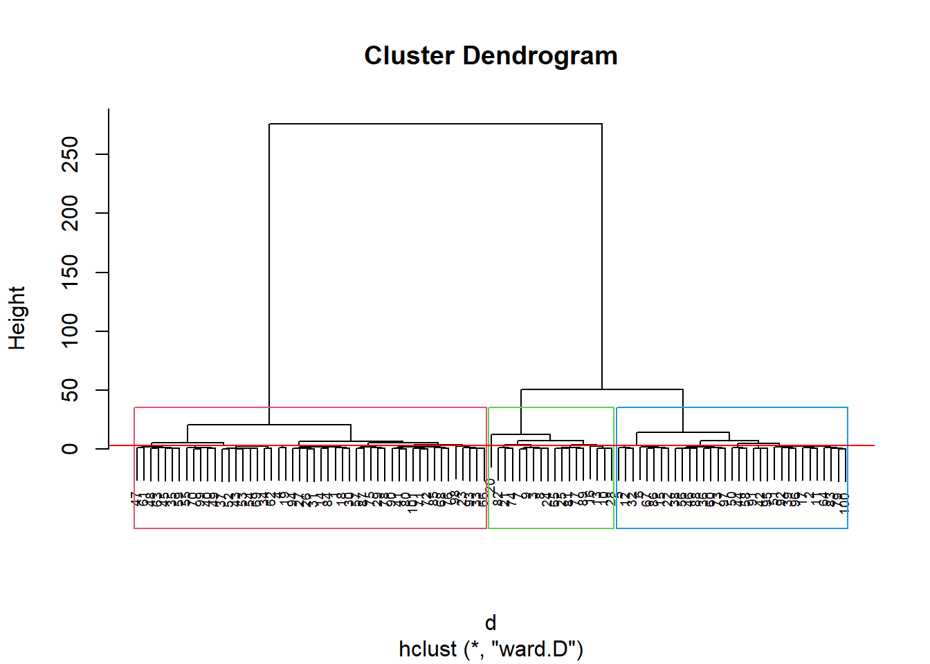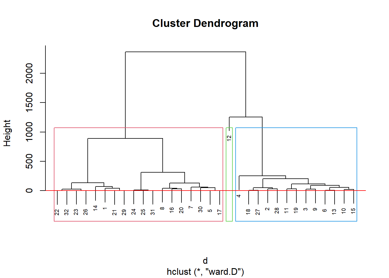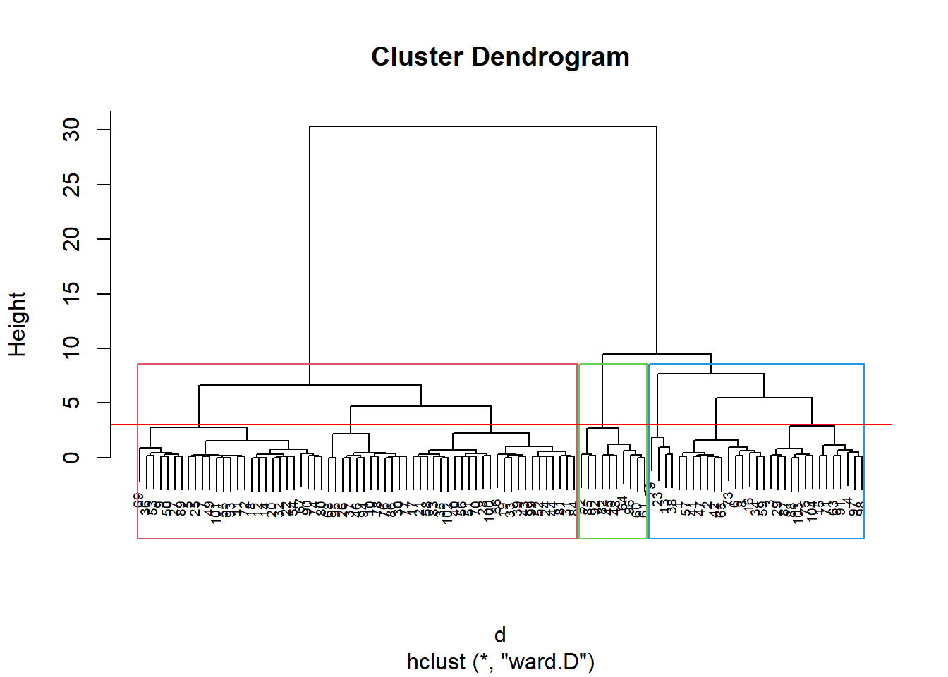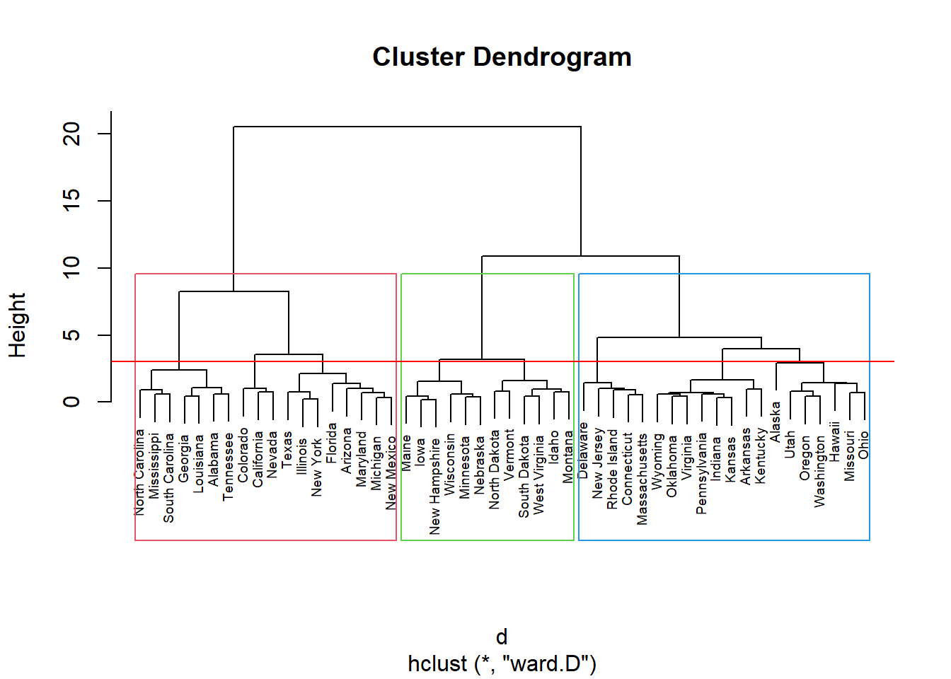 Pelo dendograma podemos infererir uma divisão em 3 clusters:
