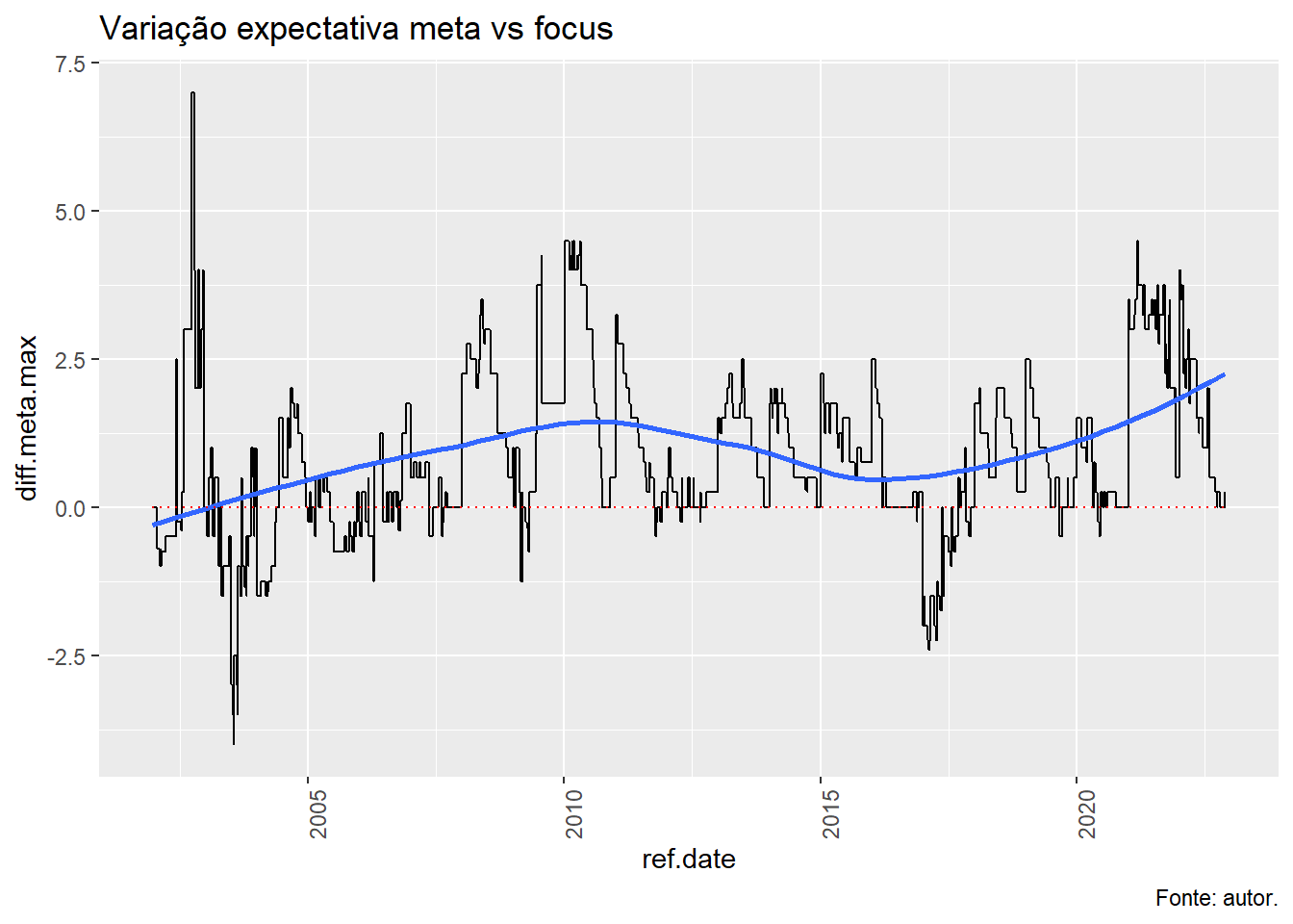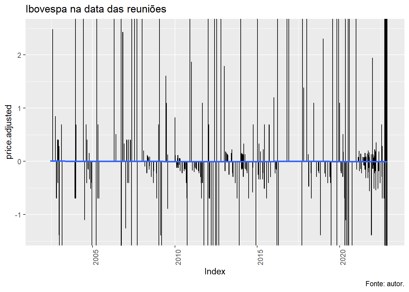Sempre que \(s_t\) é negativo, o mercado esperava um valor menor do que o decidido pelo COPOM e vice-versa.