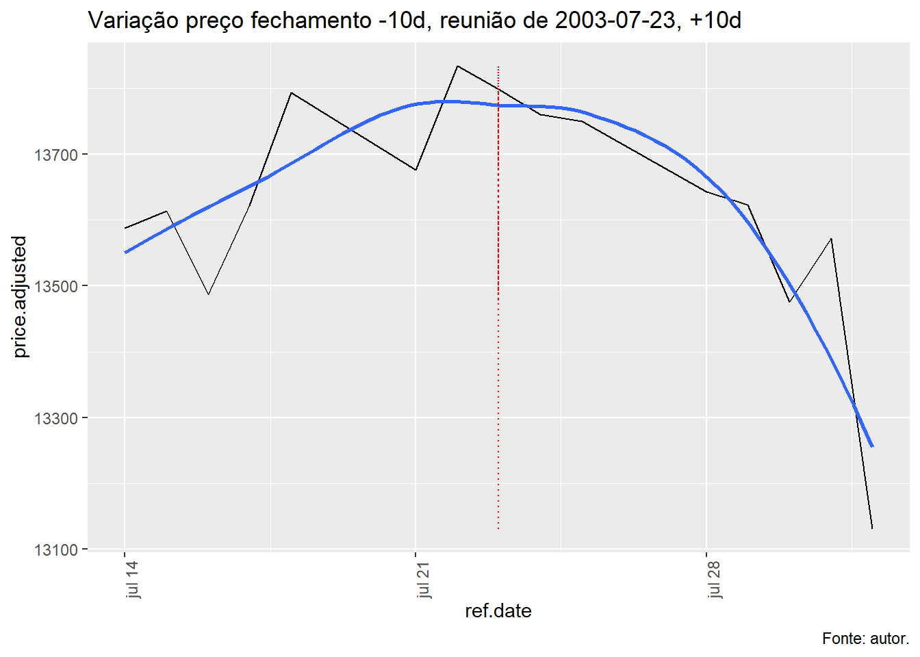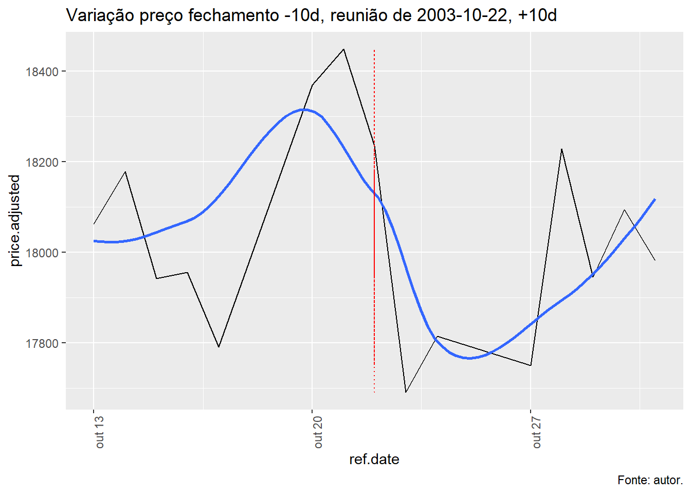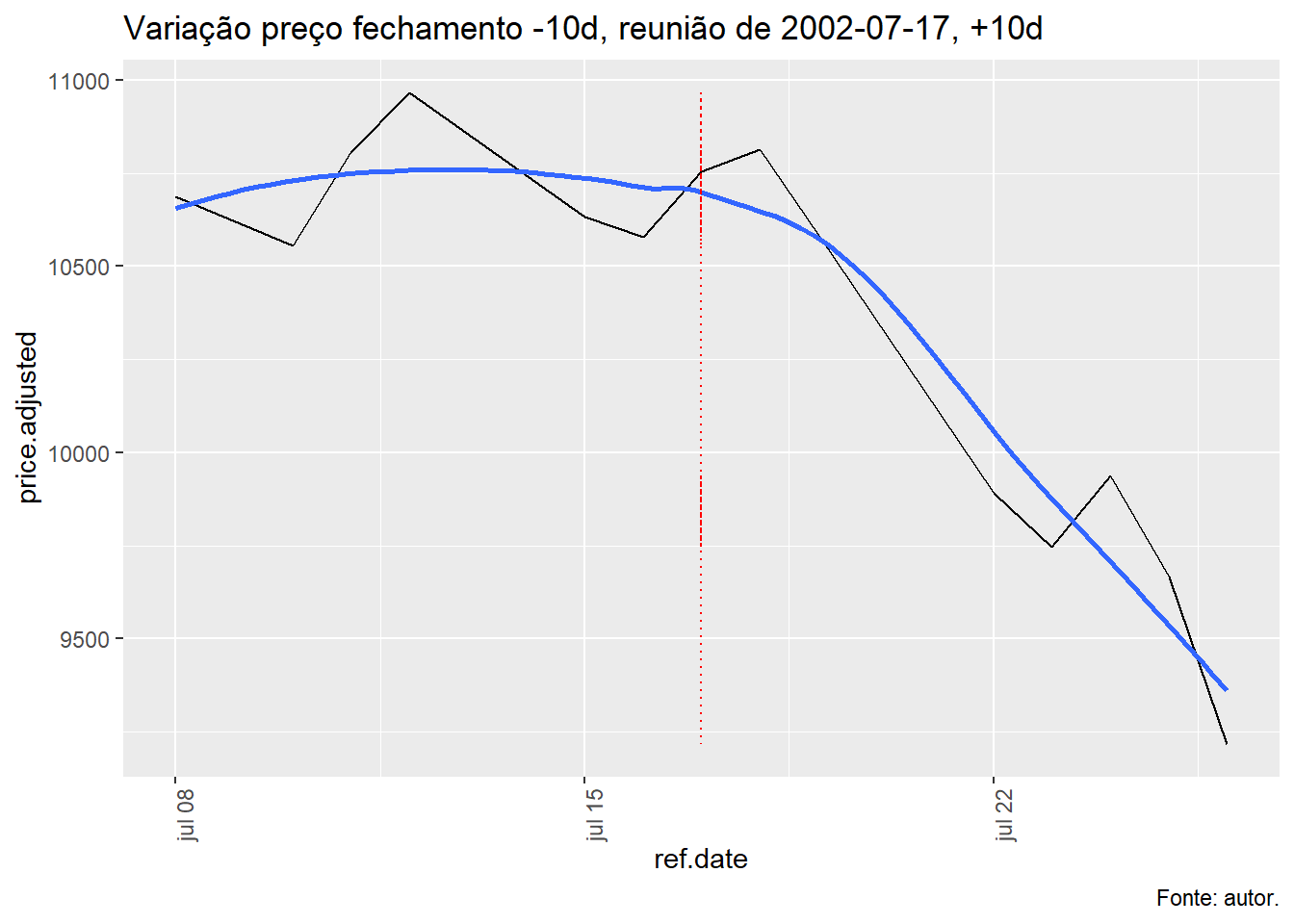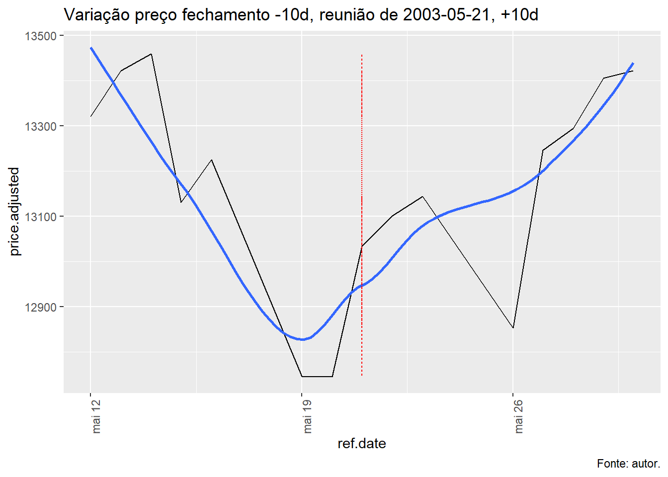 Para tal, foi avaliado a evolução do índice Ibovespa, taxa Selic e o efeito da decisão do COPOM no índice Bovespa num período de dez dias antes e depois da decisão e qual foi o retorno nos respectivos períodos.
