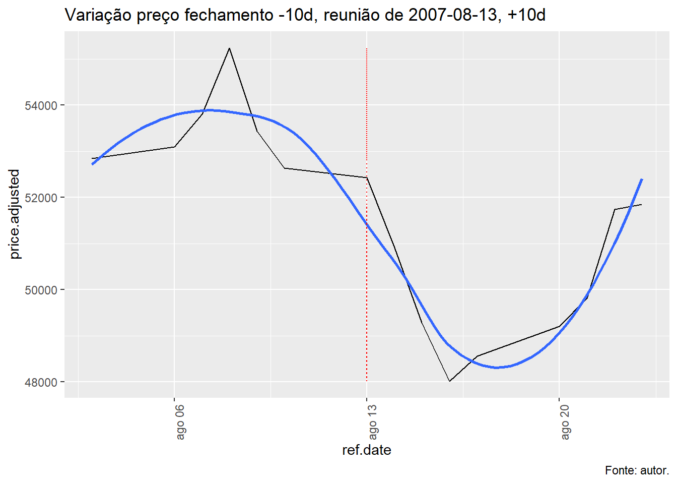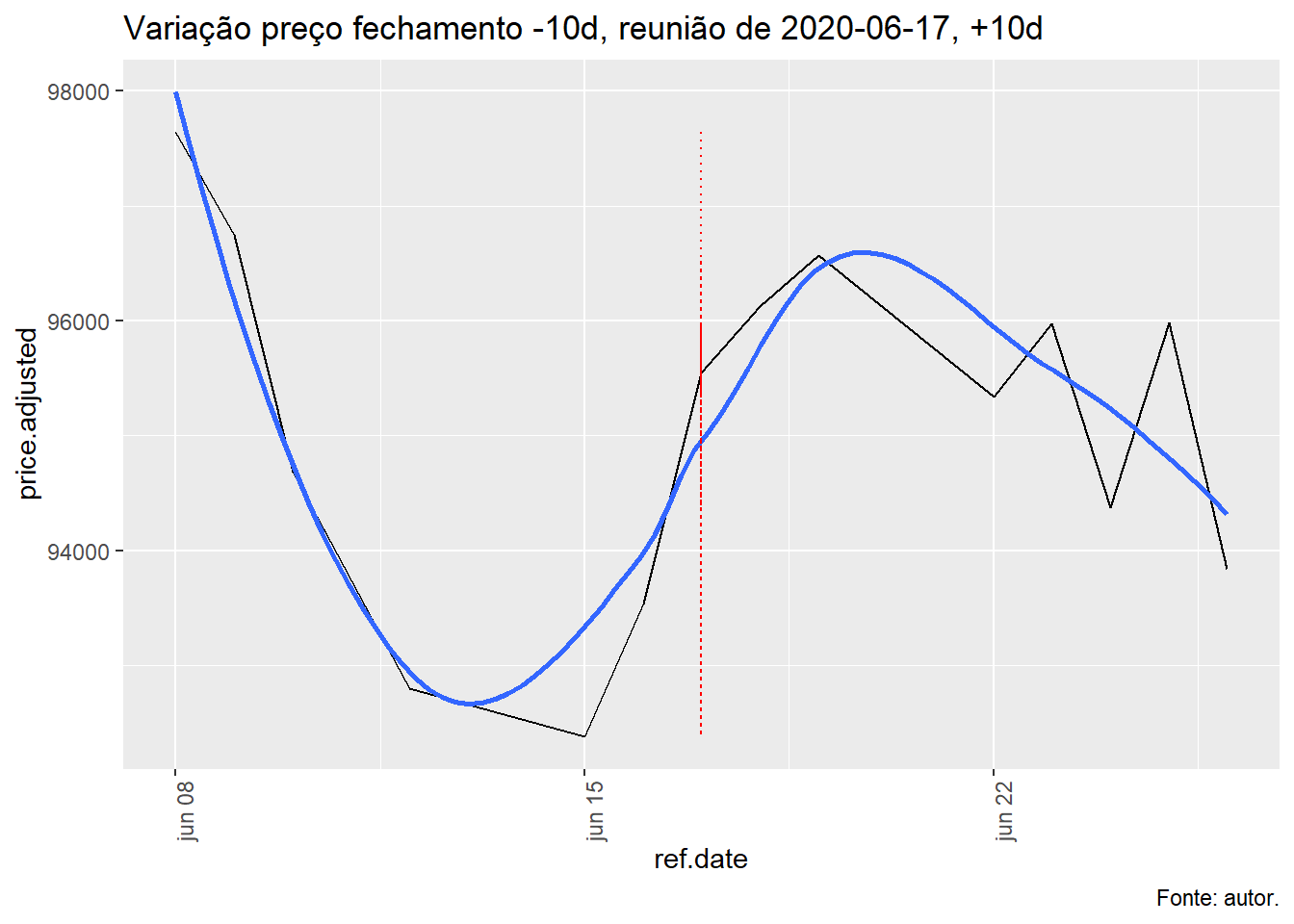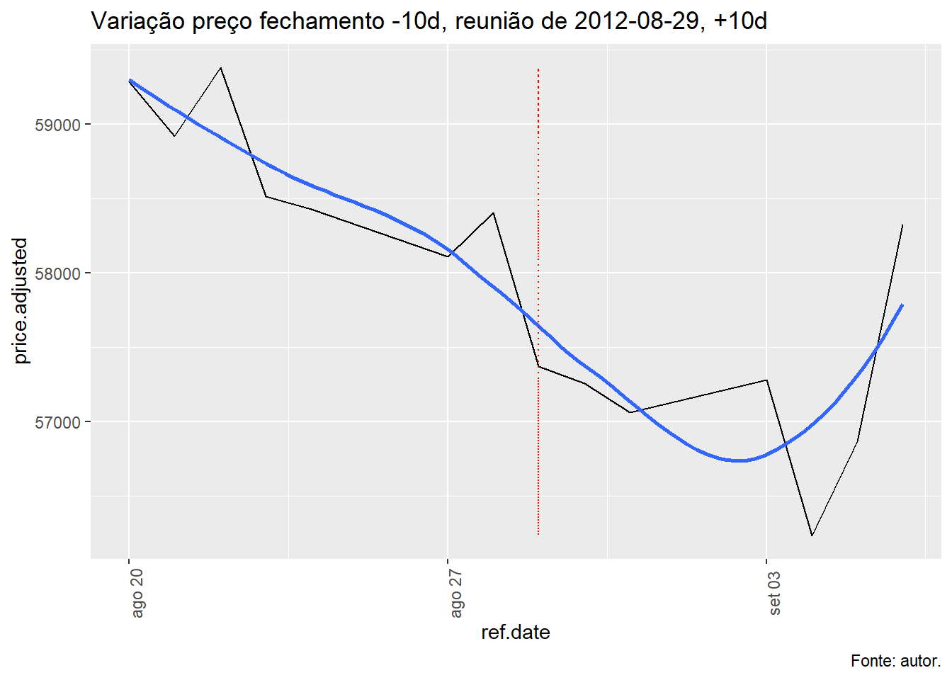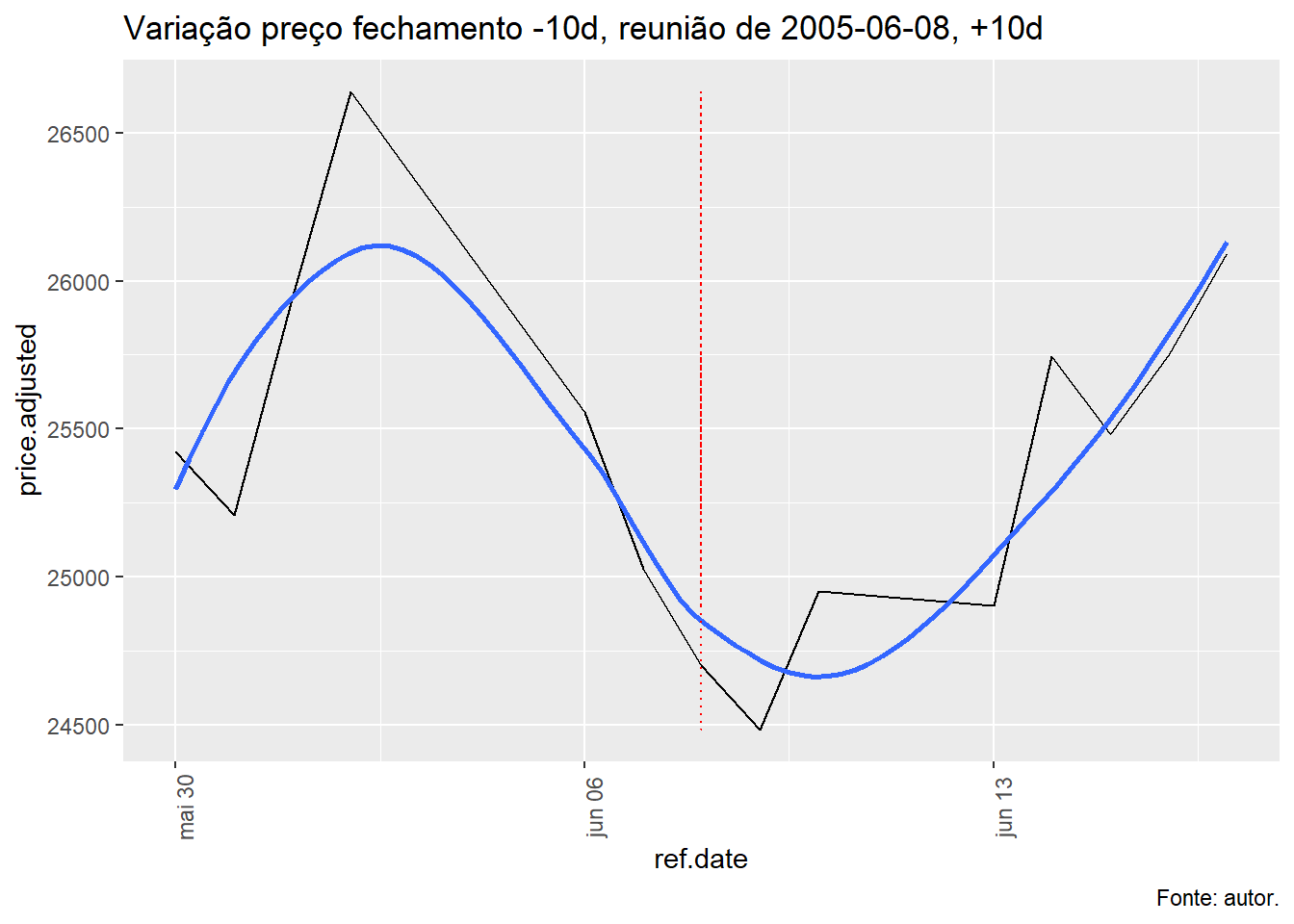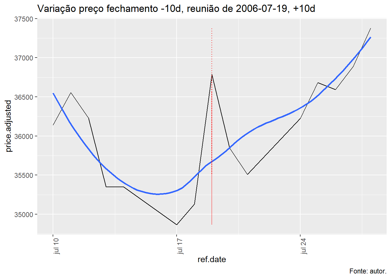 Para tal, foi avaliado a evolução do índice Ibovespa, taxa Selic e o efeito da decisão do COPOM no índice Bovespa num período de dez dias antes e depois da decisão e qual foi o retorno nos respectivos períodos.
