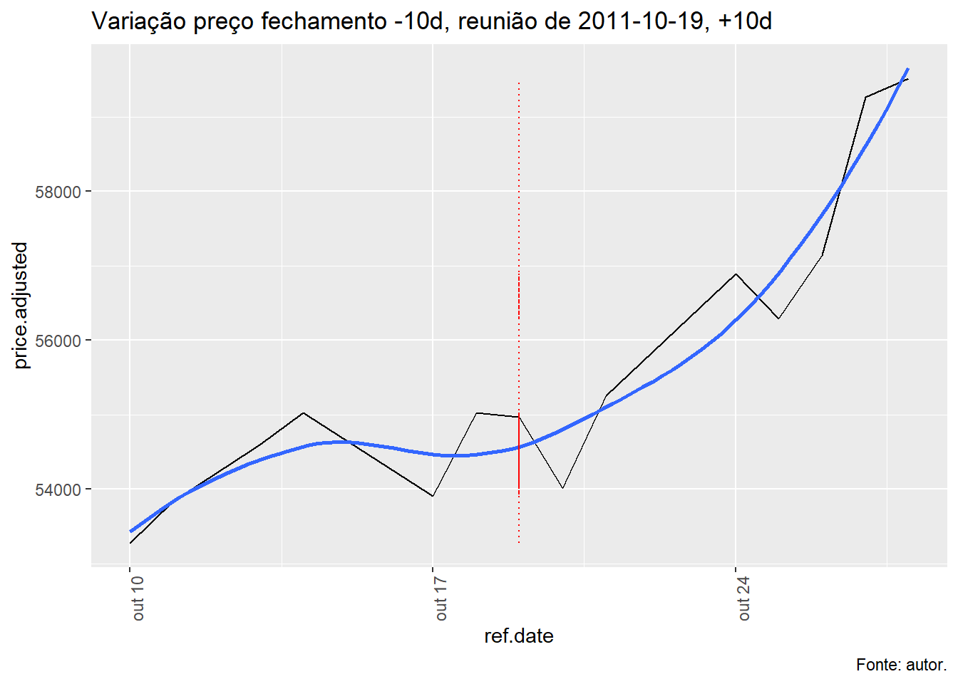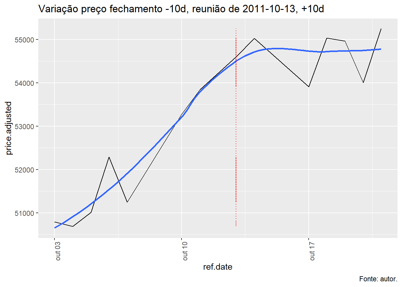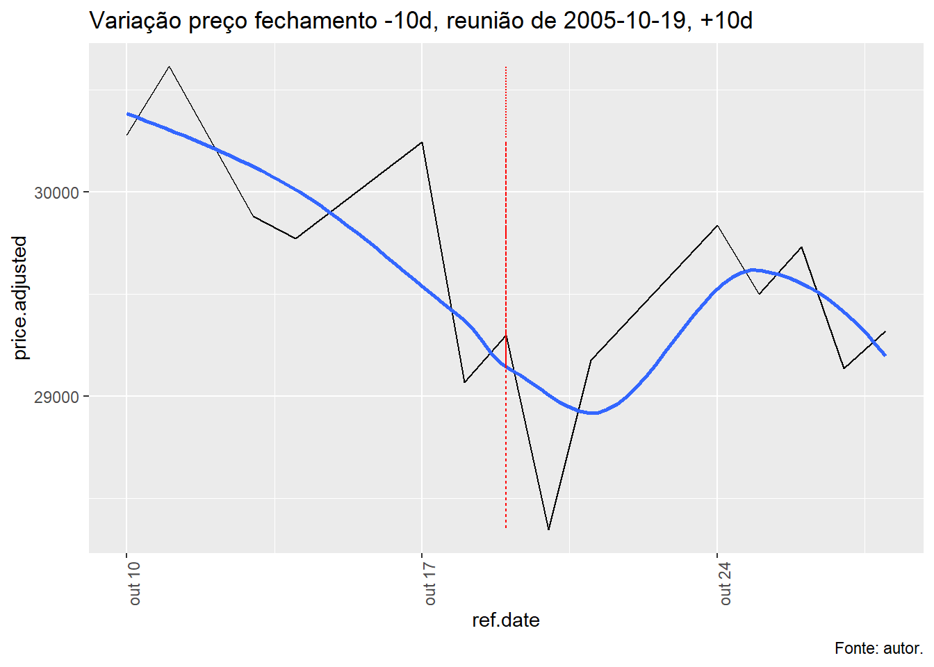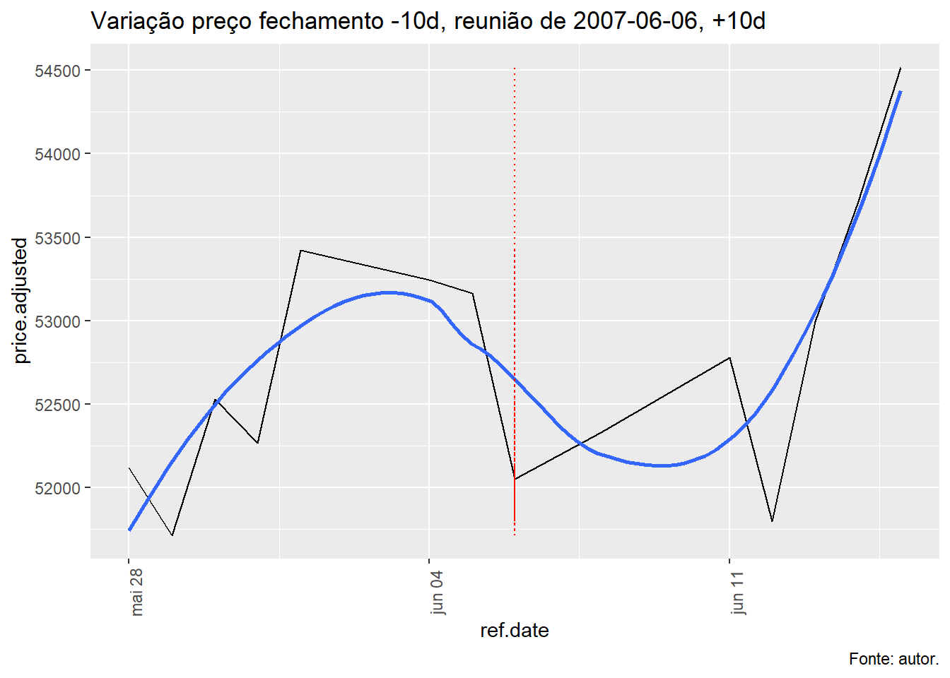 Para tal, foi avaliado a evolução do índice Ibovespa, taxa Selic e o efeito da decisão do COPOM no índice Bovespa num período de dez dias antes e depois da decisão e qual foi o retorno nos respectivos períodos.