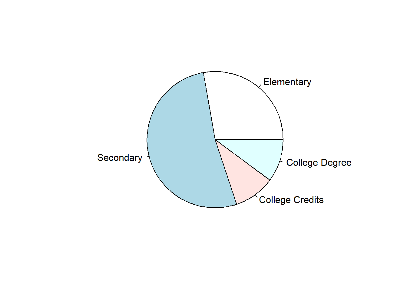 pie(observed, labels =c("Elementary", "Secondary", "College Credits", "College Degree"))