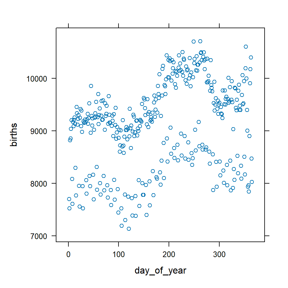 xyplot(births ~ day_of_year, data=Births78)