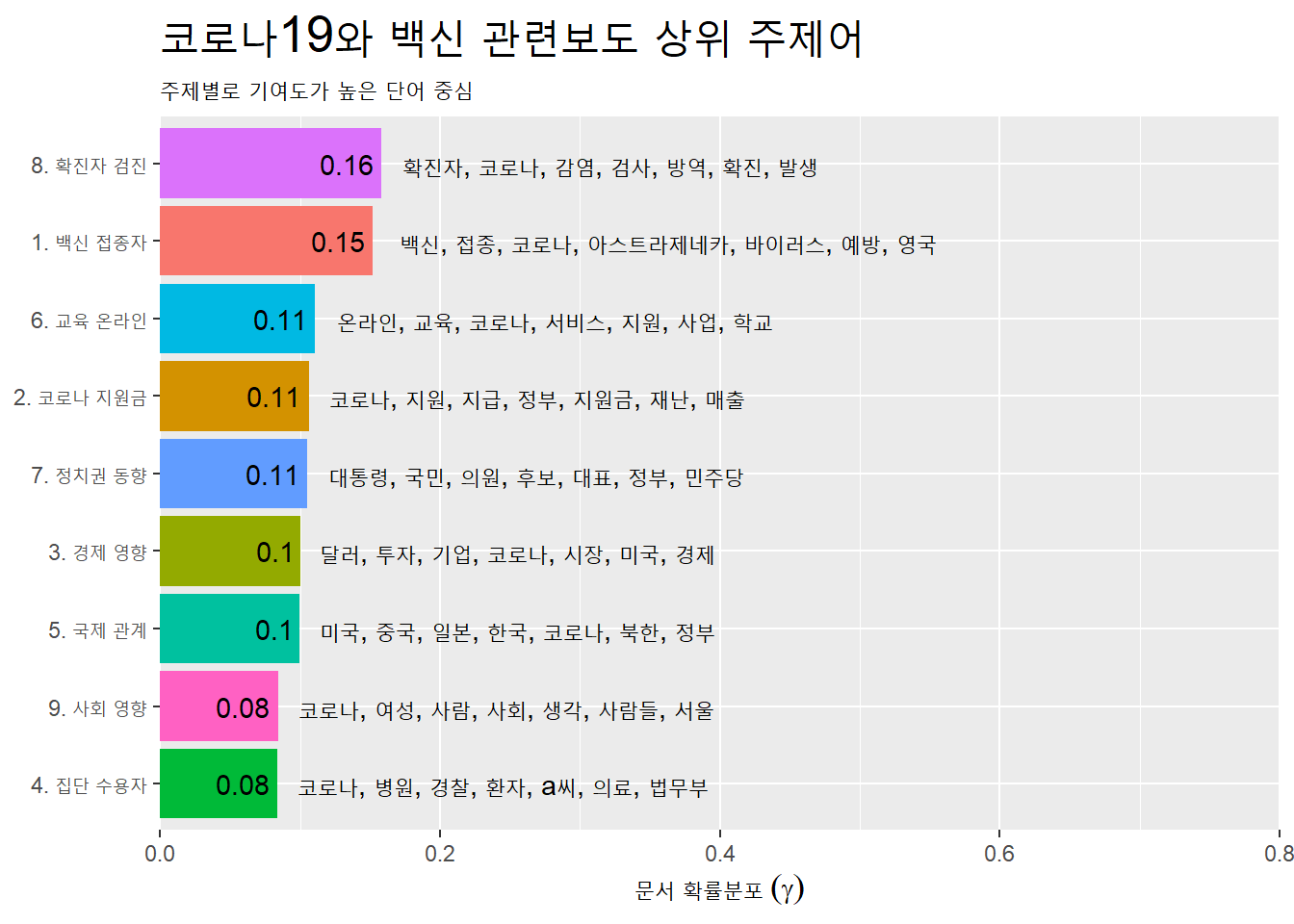 ## $ name <chr> "1. 백신 접종자", "2. 코로나 지원금", "3. 경제 영향", "4. 집단 수용자", "5. 국...