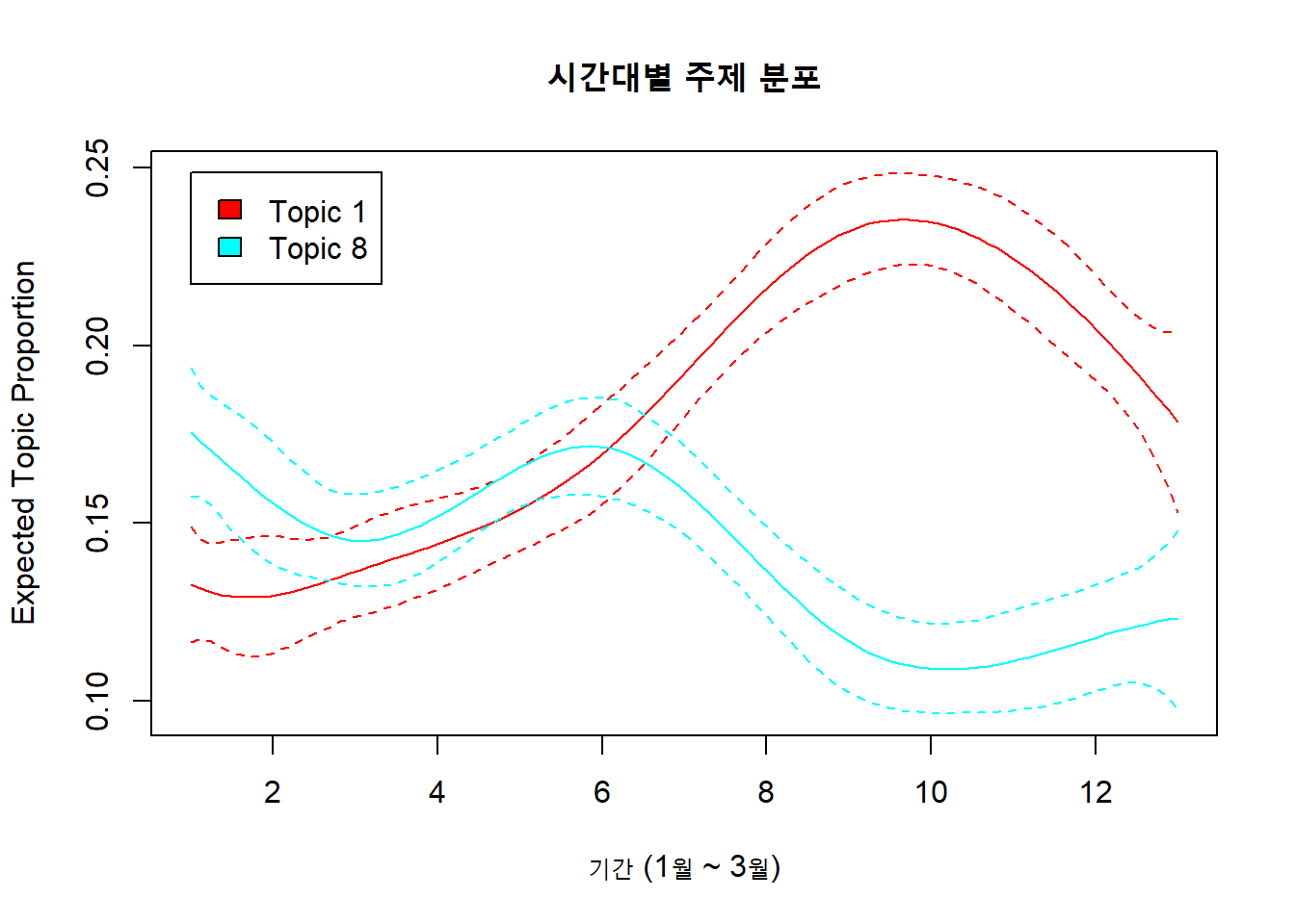 title = "시간대별 주제 분포") +