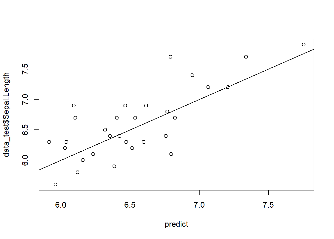 我们假设这个一元方程为 \(y=a*Petal.Length +b\),我们用Petal.Length 来对Sepal.Length做线性回归。