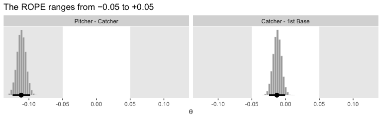 Kruschke began: “A region of practical equivalence (ROPE) indicates a small range of parameter values that are considered to be practically equivalent to the null value for purposes of the particular application” (p. 336, emphasis in the original)