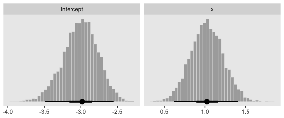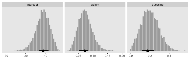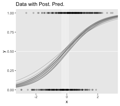prior(normal(0, 2), class = b)))And the results of these two should be the same as long as the dara are not aggregated. In brms, the default link for both family = bernoulli and family = binomial models is logit, which is exactly what we want, here. Also, note the additional | trials(1) syntax on the left side of the model formula. You could get away with omitting this in older versions of brms. But newer versions bark at you to specify how many of trials each row in the data represents. This is because, as with the baseball data we’ll use later in the chapter, the binomial distribution includes an \(n\) parameter. When working with un-aggregated data like what we’re about to do, below, it’s presumed that \(n = 1\).