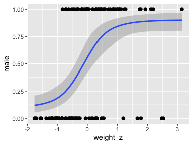Our first logistic model with family = bernoulli uses only weight_z as a predictor.