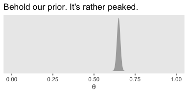 labs(title = "Behold our prior. It's rather peaked.",