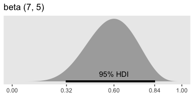 }Just to warm up, consider a beta distribution for which \(\omega = .5\) and \(\kappa = 2000\). Here are the 95% HDIs.