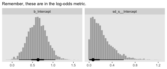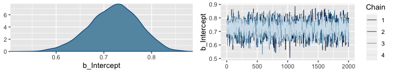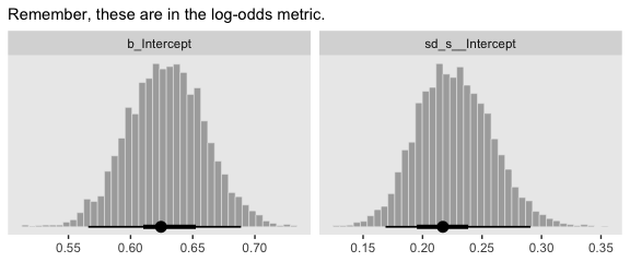 And indeed our samples did tend around \(\theta =.643\). Had we increased our number of draws by an order of magnitude or two, it our proportion of heads would have been even closer to the true data-generating value.