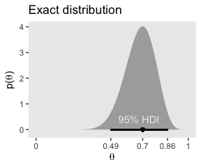 }Our hdi_of_icdf() function will compute the analytic 95% HDIs for the distribution under consideration in Figure 7.1, \(\text{beta} (\theta | 15, 7)\).