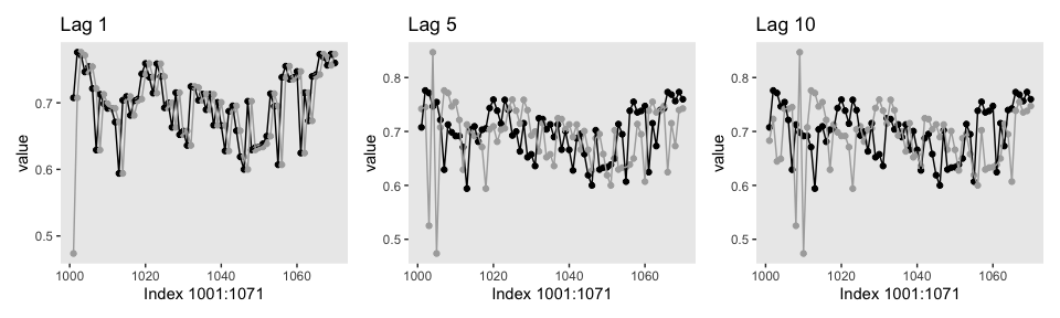 lowerCor(digits = 3)## lag_0 lag_1 lag_10 lag_5
