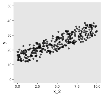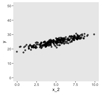 mutate(y = rnorm(n = n, mean = 10 + x_1 + 2 * x_2))