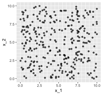 If we presume the data for the two \(x\) variables are uniformly distributed within 0 and 10, we can make the data for Figure 18.1 like this.