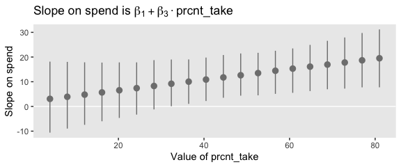 ## Formula: satt_z ~ 1 + spend_z + prcnt_take_z