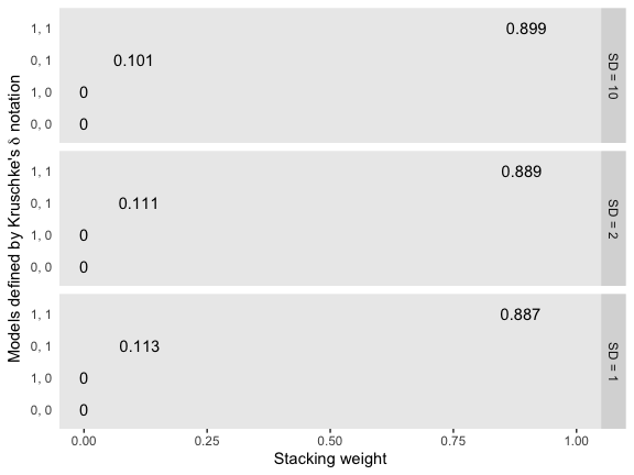 In his Corrigenda, Kruschke further clarified: “that is true only in case there is a single predictor, not for multiple predictors. The statement could have said that ‘R^2 is algebraically constrained to fall between −1 and +1 in least-squares regression’. More relevantly, replace the statement with the following: ‘In multiple linear regression, standardized regression coefficients tend to fall between -2 and +2 unless the predictors are very strongly correlated and have strongly opposing effects. If your data have strongly correlated predictors, consider widening the prior.’”↩