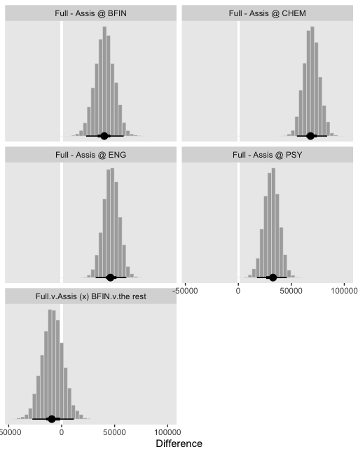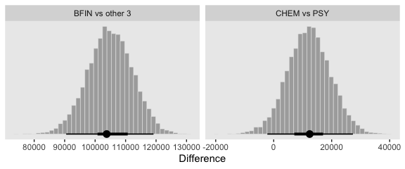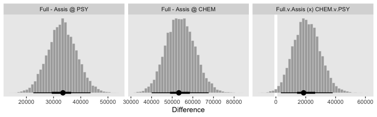 As far as I can tell, it appears that our contrasts indicate our variance parameter for Till ended up larger than Kruschke’s.