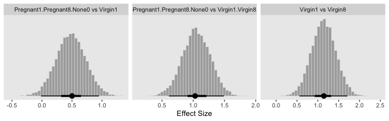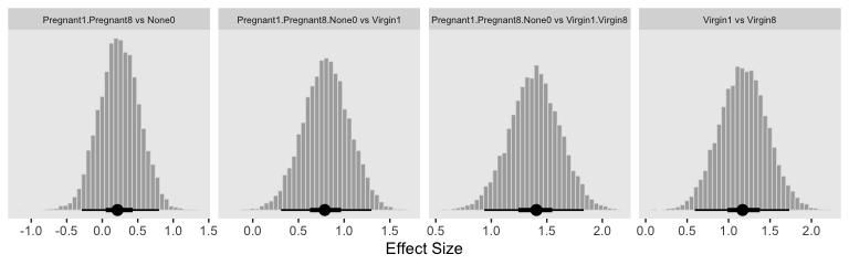 Notice that because (a) the sigma parameters were heterogeneous and (b) they were estimated on the log scale, we had to do quite a bit more data processing before they effect size estimates were ready.