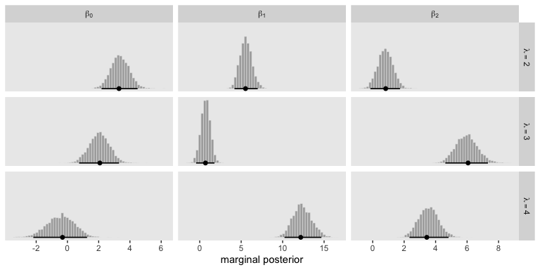 facet_grid(lambda~parameter, labeller = label_parsed, scales = "free_x")