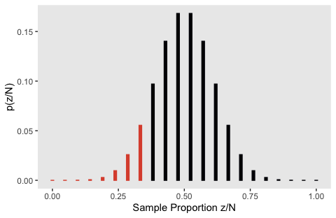 fill = `Sample Proportion z/N` >= 7 / 24)) +