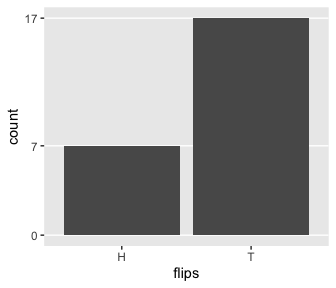tibble(flips = sample(c("H", "T"), size = 24, replace = T)) %>%